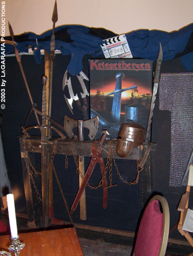 | Als Aussteller auf der "Spiel '04" in Essen 21. - 24. Oktober 2004 Ein zweites Mal war "Kriegerherzen" auf der Spielemesse in Essen mit einem eigenen Stand vertreten. In der Halle 6, der Halle mit dem Schwerpunkt Fantasy, hat das Team von "Kriegerherzen" darüber informiert, in welchem Stadium sich das Filmprojekt derzeit befindet. Die Zahl der interessierten Fragen war groß und viele wollten wissen, wann der Film denn Premiere feiern kann. Wir konnten mit Freude erfahren, dass ausnahmelos alle Fragesteller Verständnis dafür hatten, dass die Fertigstellung eines Films ohne finanzielle Unterstützung seine Zeit braucht. Selbstverständlich ist eine solche Nachsicht nicht. Als Neuheit konnte LaGARAFA Productions auf der standeigenen Leinwand und einem großen Bildschirm die neuesten Erfolge von "Kriegerherzen" zeigen. Neben den schon bekannten Trailern war eine Vorschau auf das vor kurzem fertiggestellte Musikvideo zum Titelsong "Warriorhearts" der Gruppe "Minotaurus" der eindeutige Höhepunkt der Messe. Das mit uns am Stand vertretene Label "Curzweyhl" hatte zusammen mit der Band Anfang Oktober die neue CD "Myth or Reality" herausgebracht, auf der das über neun Minuten dauernde Werk einen gewichtigen Anteil hat. Abgesehen von neuen Kontakten zu Künstlern, Independent-Filmern und Geschäftsleuten ist besonders positiv aufgefallen, dass sowohl die Crew als auch die Gemeinde der Interessierten treu hinter dem Projekt "Kriegerherzen" stehen. Ein durchweg positives Fazit für die Spiel '04!
