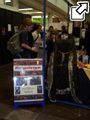 | Promotion auf dem BuchmesseCon in Dreieich bei Frankfurt 11. Oktober 2003 Durch einen Kontakt vom Feen Con sind wir der Einladung gefolgt und auf eine Convention im Rahmen der Buchmesse Frankkfurt ins hessische Dreieich gefahren. Zu dieser langjährigen Traditionsveranstaltung mit familiärem Charakter konnten wir nur mit einer minimalsten Crew fahren, da die Vorbereitungen für die SPIEL '03 und die Ring*Con die meisten Leute der Promo-Crew banden. Ein glücklicher Zufall wollte es jedoch, dass am anschließenden Sonntag noch Nachdreharbeiten für das Musikvideo "Warriorhearts" von Minotaurus im benachbarten Aschaffenburg anstanden. Daher waren sowohl Producer Lars Gatting als auch Regisseur Rainer ZIPP Fränzen vor Ort. Als Dritter im Bunde war Kameramann Roland Zerwinski mit dabei. Neben einigen Bekannten (darunter Journalist und 'Meister Tevon' Robert Vogel) haben wir auch eine Reihe neu Interessierte mit Informationen versorgen können. Auch stand Lars Gatting einem lokalen Fernsehkanal im Interview Rede und Antwort. Das für uns angesetzte 'Panel' war gut besucht und die Anwesenden fragten stetig und neugierig nach, sodass die Vorführung den Rahmen eines Workshops im Sinne unseres 'Tipps und Tricks fürs Start Up' bekam. Ein schönes Beispiel von Gruppendynamik. Vielleicht sind wir ja auch im nächsten Jahr wieder dabei... Zwei Bilder von der Bucon-Website und der Link zum BuCon: |